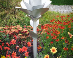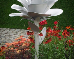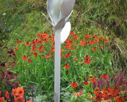 Installation of 3 roses produced for St Lukes Cheshire Hospice 25th Anniversary Garden at Tatton Flower Show 2013.
