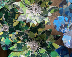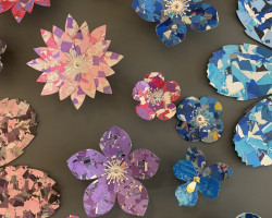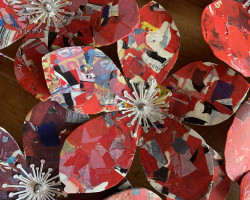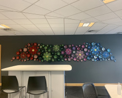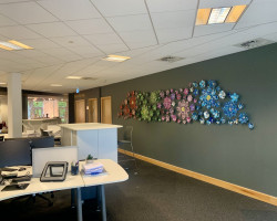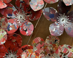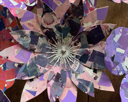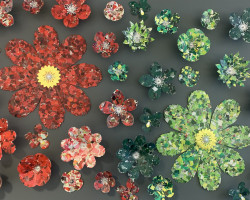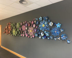 Overall installation 4m x 2m, each flower – 10cm to 40cm diameter.