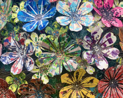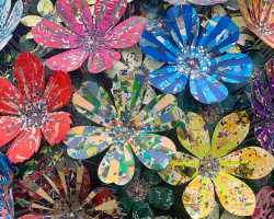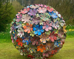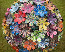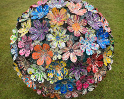 This is certainly true for the plastic around us in our everyday lives. The flowers in this sculpture are made entirely from discarded soft plastic carrier bags, bread wrappers and frozen food bags.
