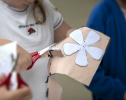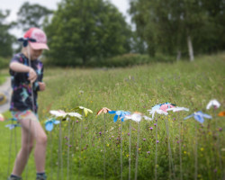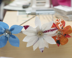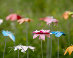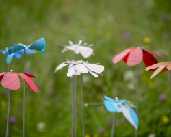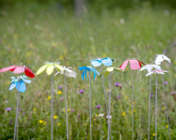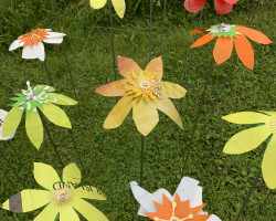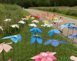 Workshop held at the Millennium Seedbank, Kew Wakehurst. Primary school children learnt about the structure of flowers and of species that are now endangered. Using templates of rare flower species prepared by Ruth along with heat pressed sheets of recycled plastic materials, the children created their own blooms that they then ‘planted’ amongst the flowers in the grounds of Kew Wakehurst.